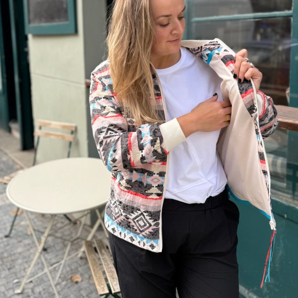Na jaro, léto, podzim a pod kabát i na zimu. Dámský bomber s vytkávaným vzorem je vždycky skvělou volbou. Kvalitní zpracování zvenku i zevnitř, zajímavé barevné detaily a parádní střih se postarají o váš originální look.