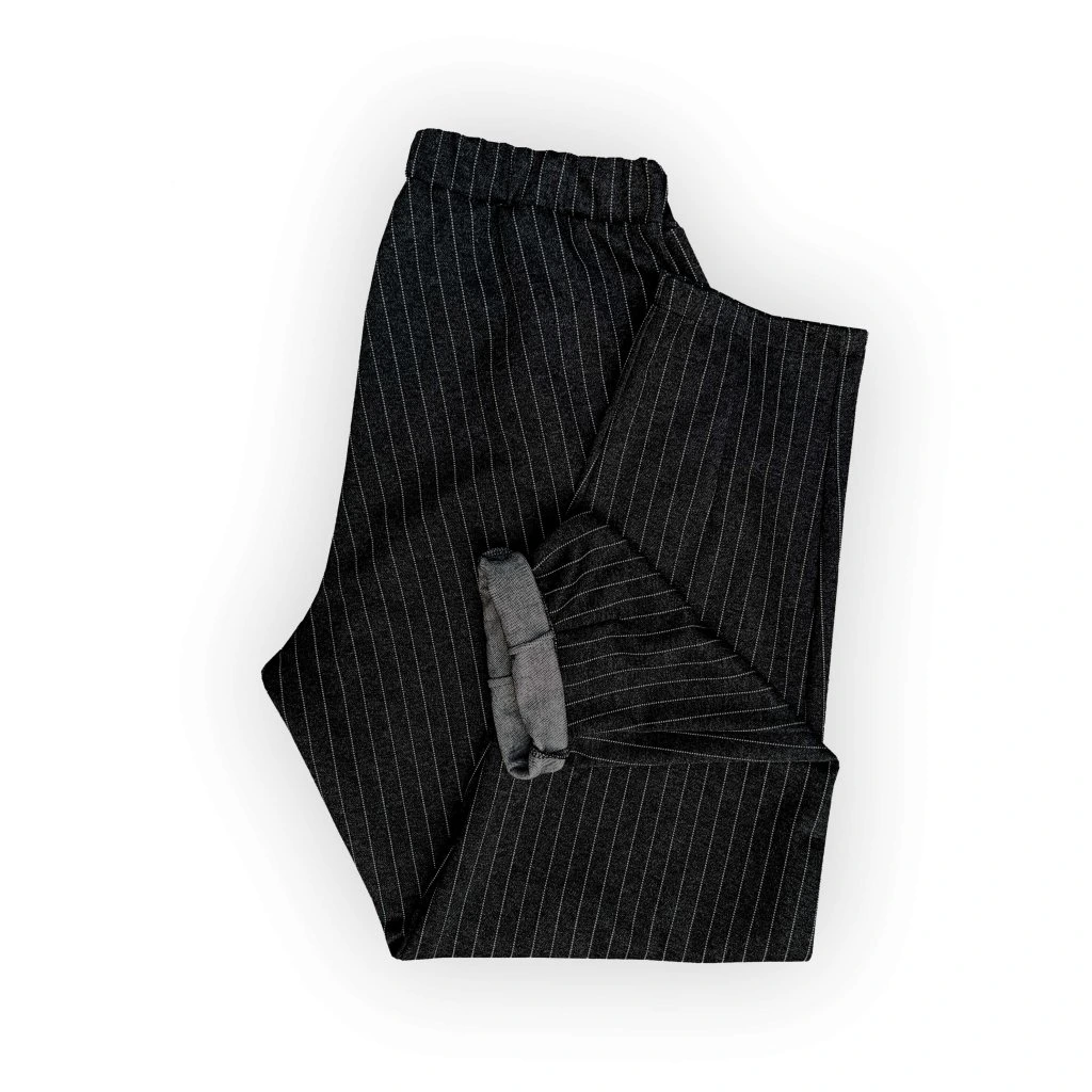 Tak to se povedlo. Tyhle splývavé a pružné kalhoty budou parádní do práce i na volný čas. Černý nebo temně khaki úplet s tenoučkým proužkem vypadá skvěle a jeho splývavost i měkkost vás doslova okouzlí. Co teprve střih! Pohodlí samo. No jen si představte, jak v nich běháte po venku. Nikde nic netlačí a vypadáte ... No prostě báječně.