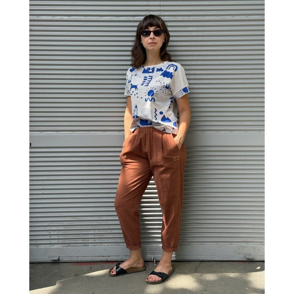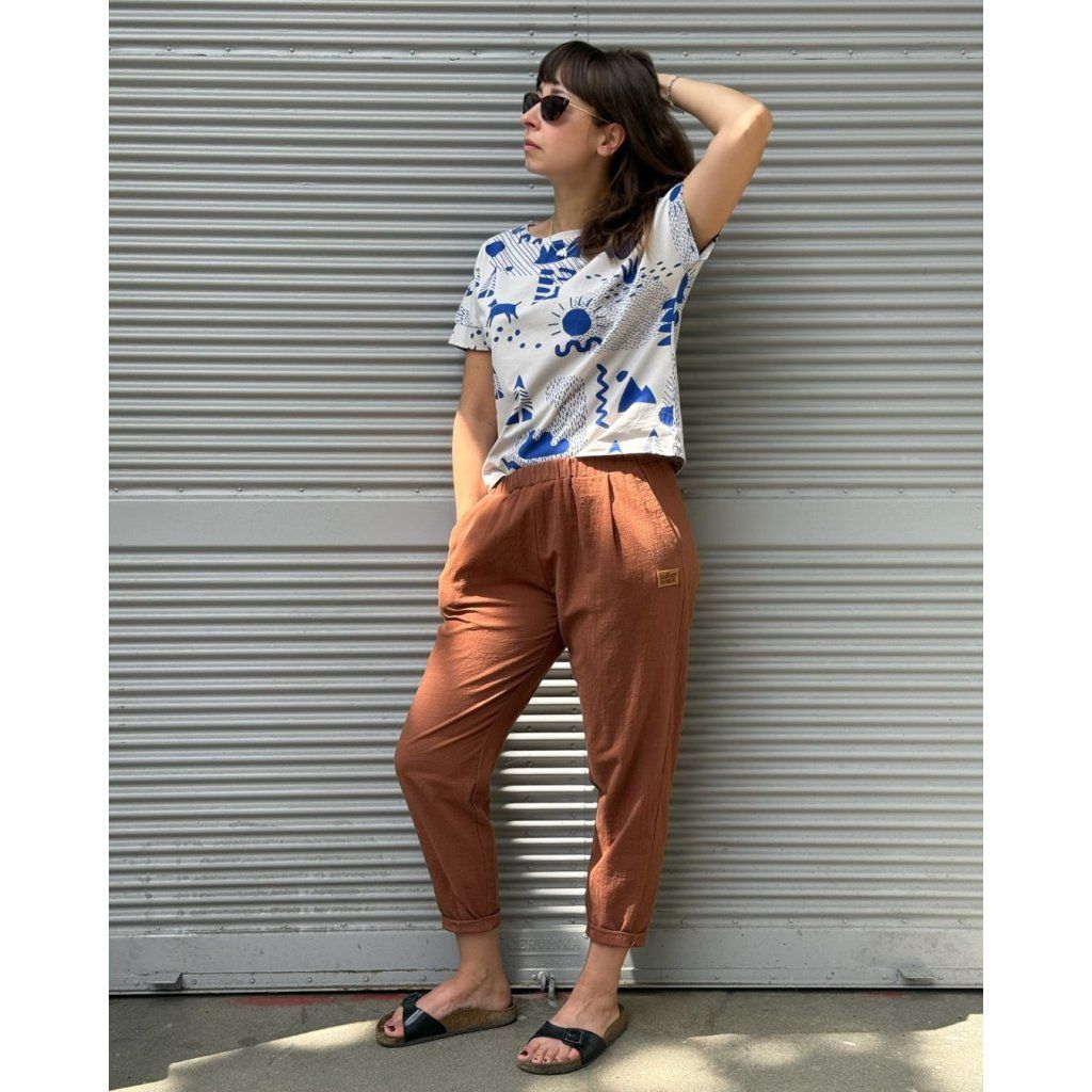 - Volný střih s pohodlným pasem do gumy – žádné zipy, žádné knoflíky, jen čistý komfort