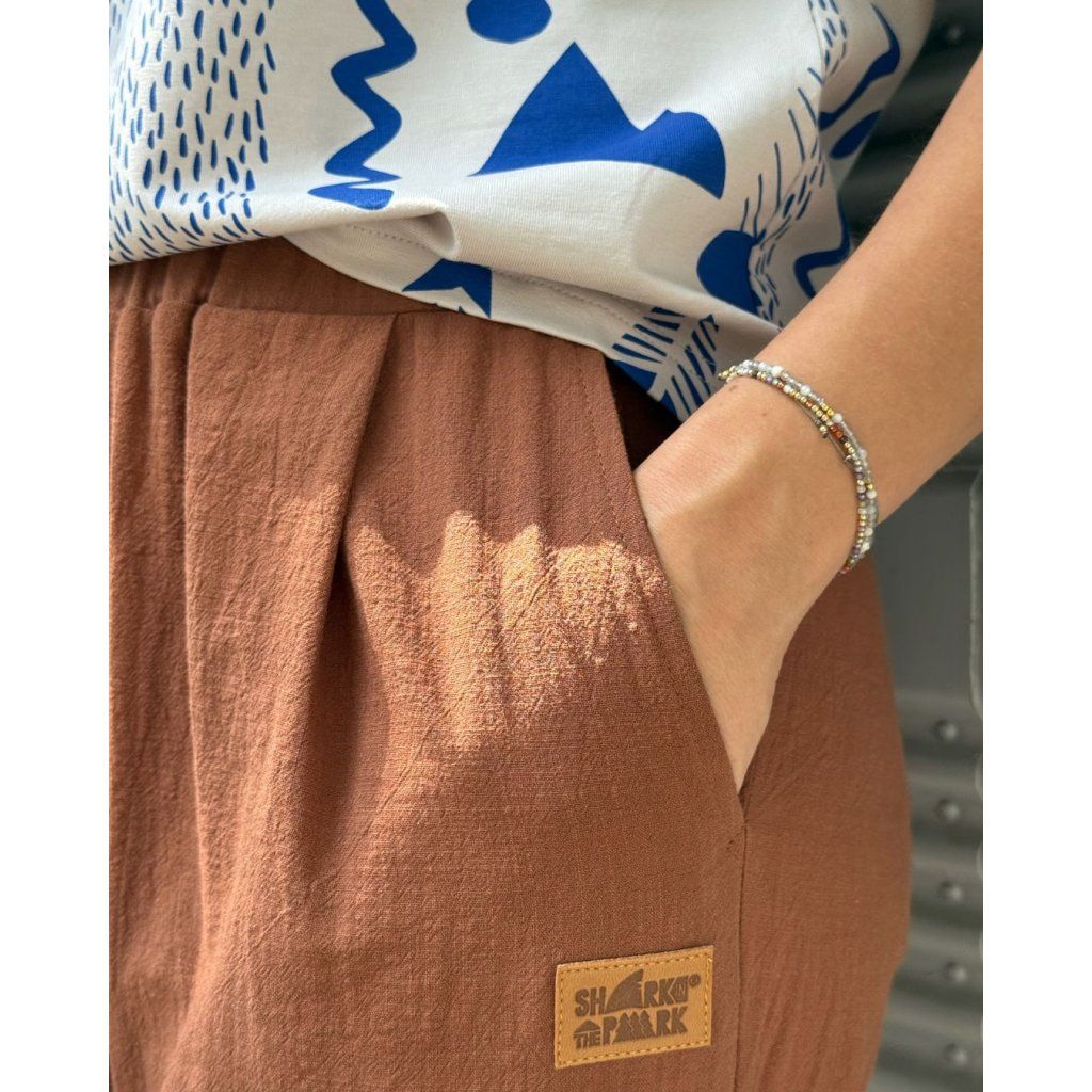Kalhoty Múza s příměsí lnu / oříškově hnědá