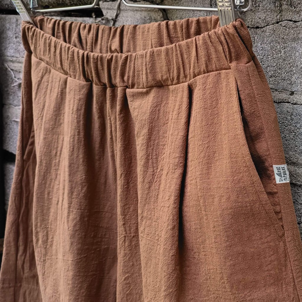 - Volný střih s pohodlným pasem do gumy – žádné zipy, žádné knoflíky, jen čistý komfort