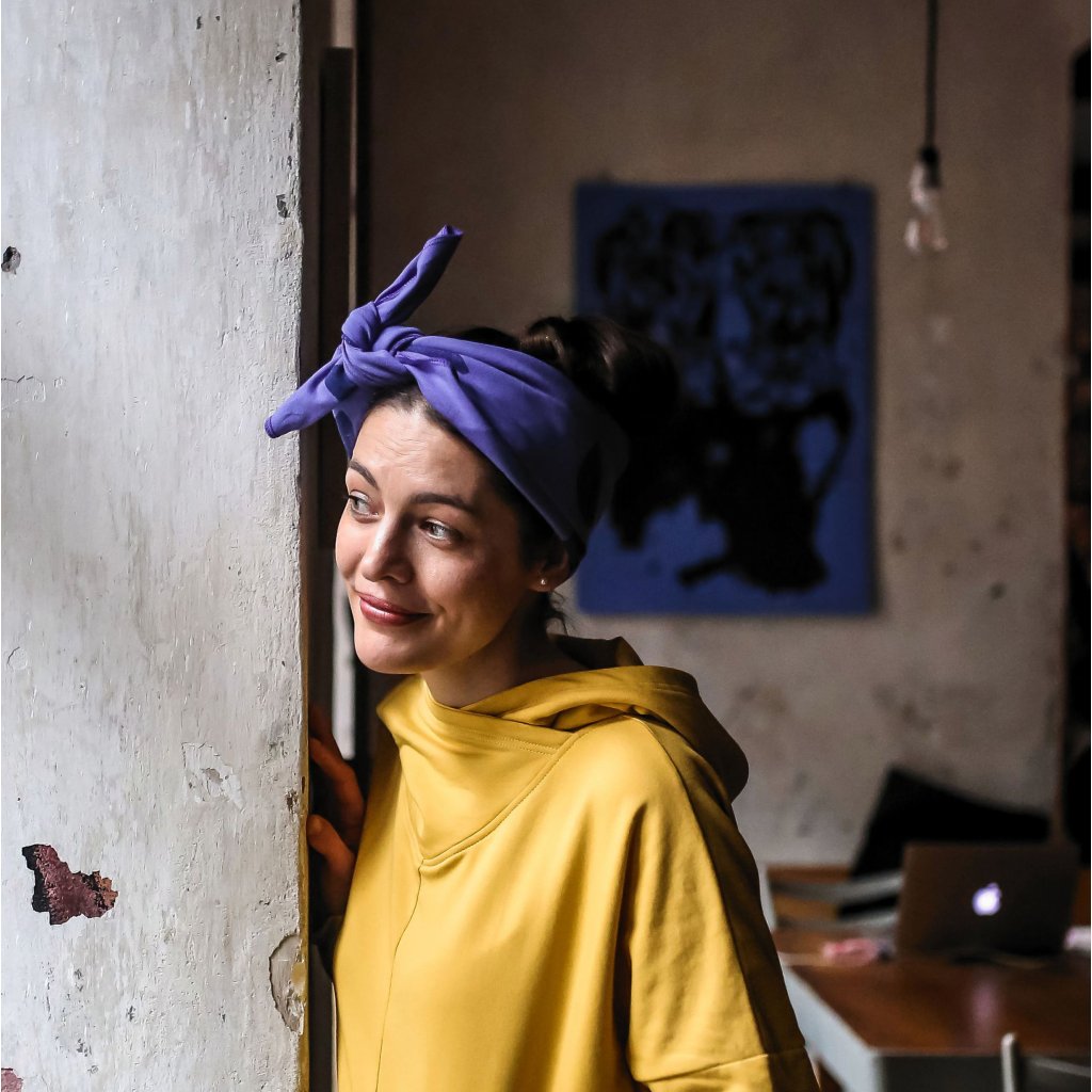 Multifunkční šátek / fialová Veri Peri s ručním tiskem