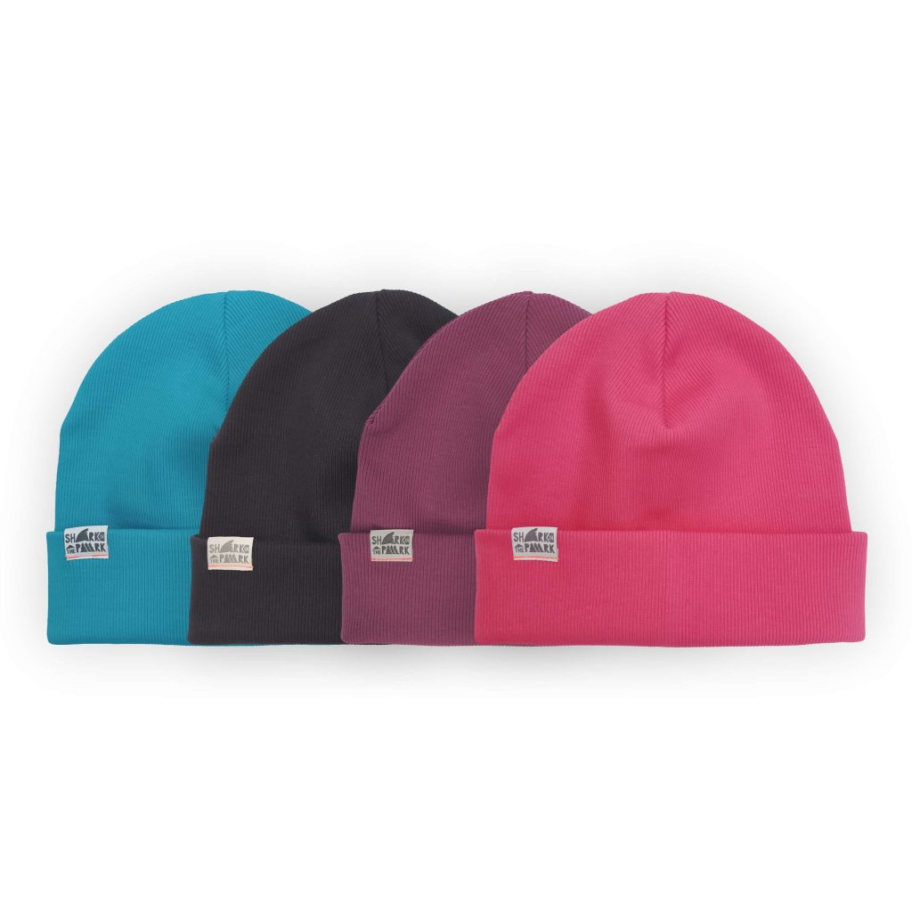 Žebrovaná čepice 2 v 1 / zemitě černá, růžový vřes, malinově růžová, jasně modrá